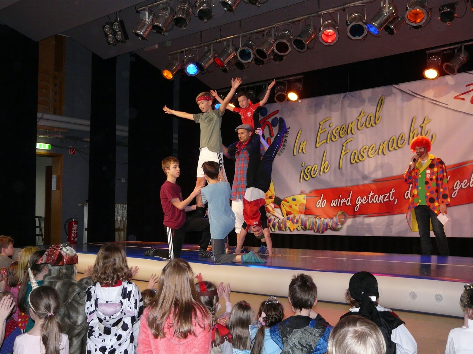 Am 24.02.2017 fand in der gut besuchten Schartenberghalle unsere Kinderfastnacht statt. Die Übungsleiter(innen) und die Kinder hatten wieder tolle Auftritte einstudiert. Den Beginn machte der Schulchor gefolgt von den Dance 4 Kids 1 und den Jungs ab Kl. 5 mit unglaublichen Sprüngen auf der Air Track Bahn. Weitere tolle Tänze gab es von Dance 4 Kids 2.